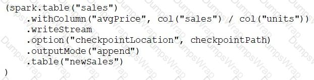 A data analyst has created a Delta table sales that is used by the entire data analysis team. They want help from the data engineering team to implement a series of tests to ensure the data is clean. However, the data engineering team uses Python for its tests rather than SQL.