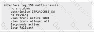 In a campus topology using VSX with two aggregation switches and downlinks to access switches, which LAG interface configuration at the aggregation layer is correct based on the parameters below?