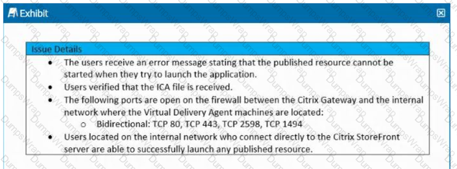 Scenario: A Citrix Architect needs to assess a Citrix Gateway deployment that was recently completed by a customer and is currently in pre-production testing The Citrix Gateway needs to use ICA proxy to provide access to a Citrix Virtual Apps and Citrix Virtual Desktops environment. During the assessment, the customer informs the architect that users are NOT able to launch published resources using the Gateway virtual server.