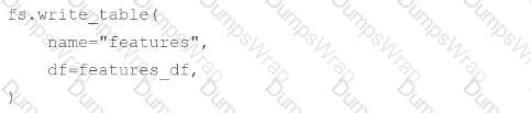 A data scientist has computed updated feature values for all primary key values stored in the Feature Store table features. In addition, feature values for some new primary key values have also been computed. The updated feature values are stored in the DataFrame features_df. They want to replace all data in features with the newly computed data.