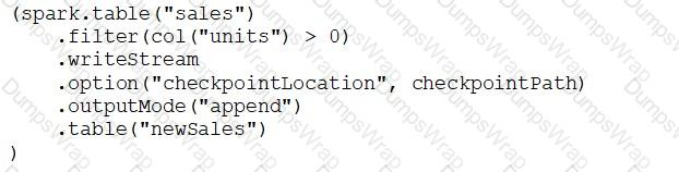 A data analyst has created a Delta table sales that is used by the entire data analysis team. They want help from the data engineering team to implement a series of tests to ensure the data is clean. However, the data engineering team uses Python for its tests rather than SQL.