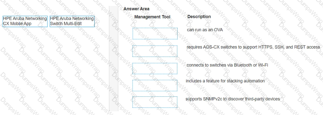 Match each description to the correct management tool tor AOS-CX.