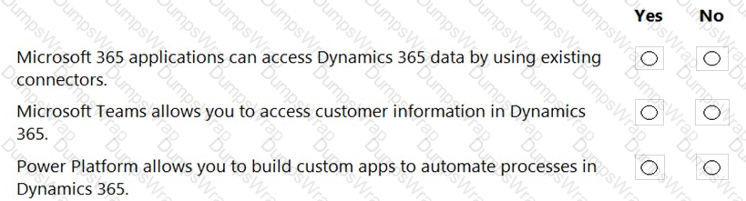 Instructions: For each of the following statements, select Yes if the statement is true. Otherwise, select No. NOTE: Each correct selection is worth one point.
