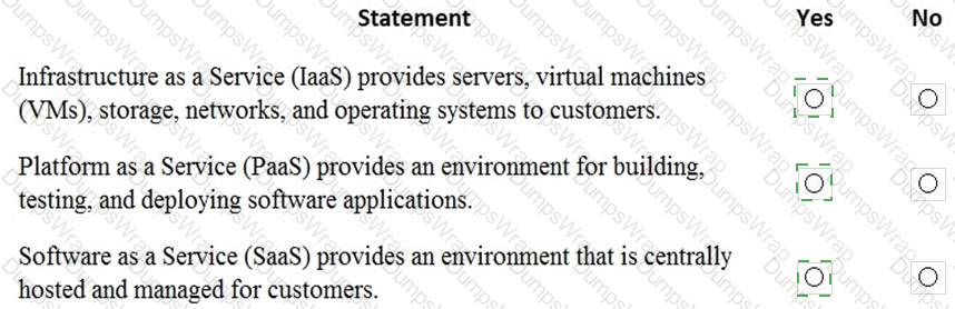 For each of the following statements, select Yes if the statement is true. Otherwise, select No.