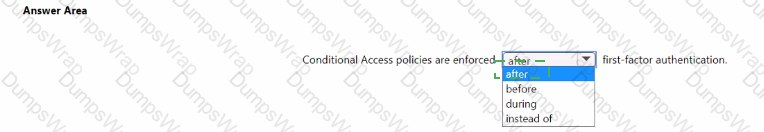 Regarding evaluation timing, Microsoft’s guidance states that Conditional Access “policies are enforced after the first-factor authentication is completed.” This means the engine needs the user’s primary sign-in context (who the user is and how they authenticated) to evaluate the conditions and then decide whether to allow, block, or require additional controls. Therefore, the statement that policies apply before first factor is not correct.