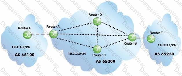 Over which BGP session will router B learn the 10.1.1.0/24 prefix?