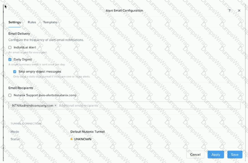 An administrator has configured Prism Central to email daily digests of alerts on a cluster. After a week, the administrator notices that digests are not being received.