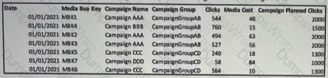 This measurement should return the "Campaign Planned Clicks" value per Campaign, for example: